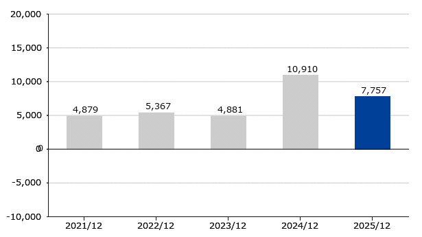 | Free cash flow | 4,879 | 5,367 | 4,881 | 10,910 | 7,757 |